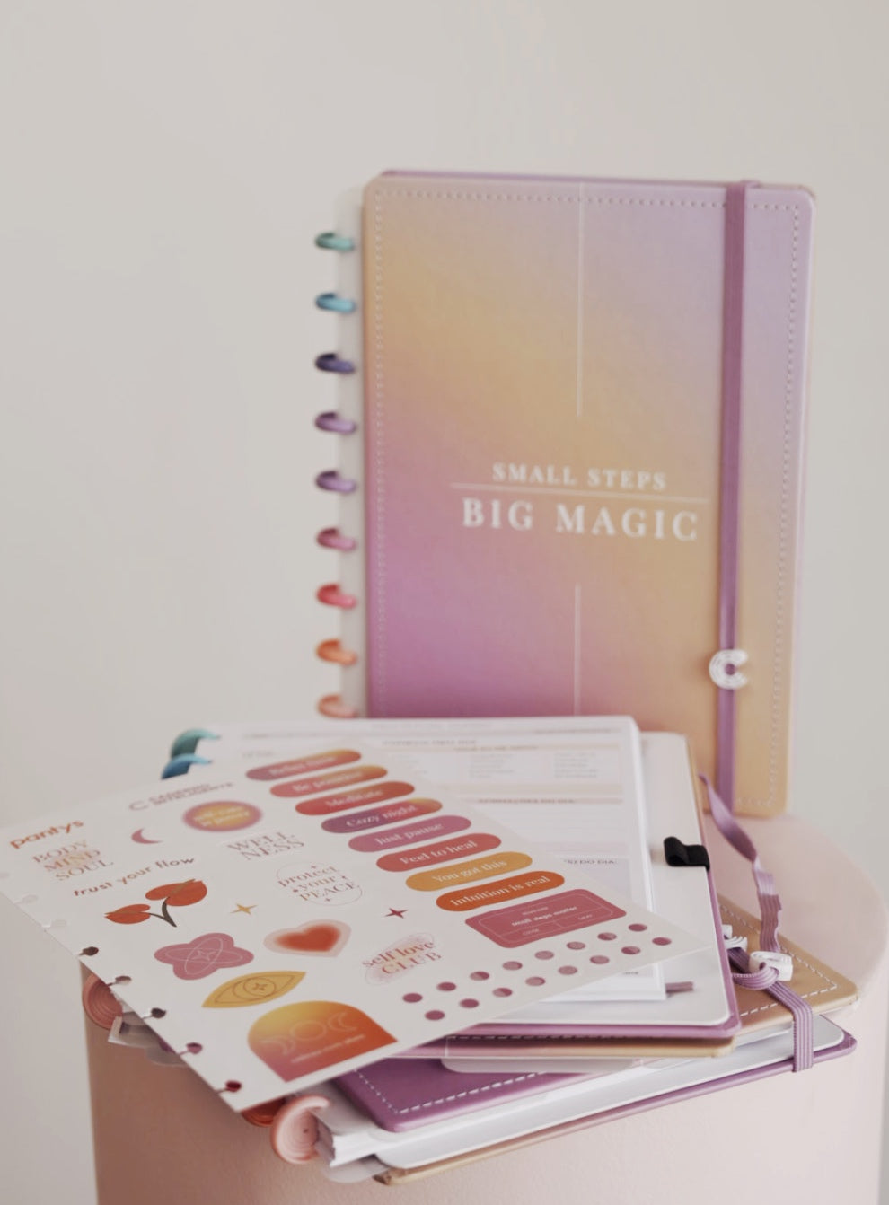 criamos o seu diário de bem-estar! o novo caderno inteligente em collab com a pantys foi pensado todinho para você ter ao longo da rotina as pequenas doses de bem-estar e cuidado que merece. o caderno inteligente + pantys te convida a um ritual diário: se observar sem julgamentos e registrar aqui que está sentindo, para que o começo de cada dia seja uma oportunidade de escutar seu corpo e mente. a capa já diz tudo, né? "small steps, big magic" nos reforça que são nas pequenas e constantes ações que o bem-estar se manifesta.