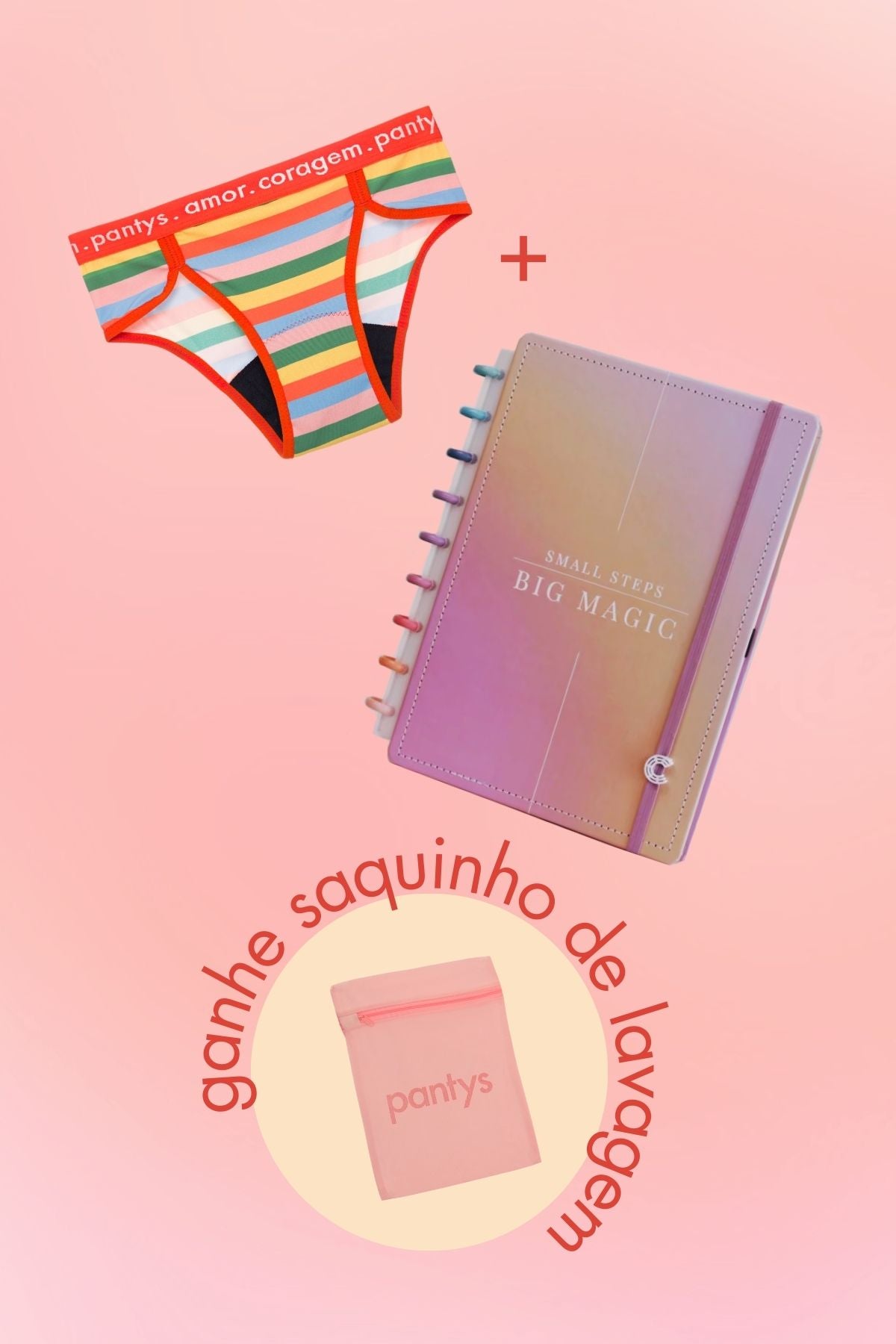 a calcinha absorvente best-seller da linha grls junto com o novo lançamento pantys + Caderno Inteligente. tem duplinha melhor para começar o ano com muito conforto, organização e bem-estar? você ainda ganha o saquinho de lavagem da pantys!